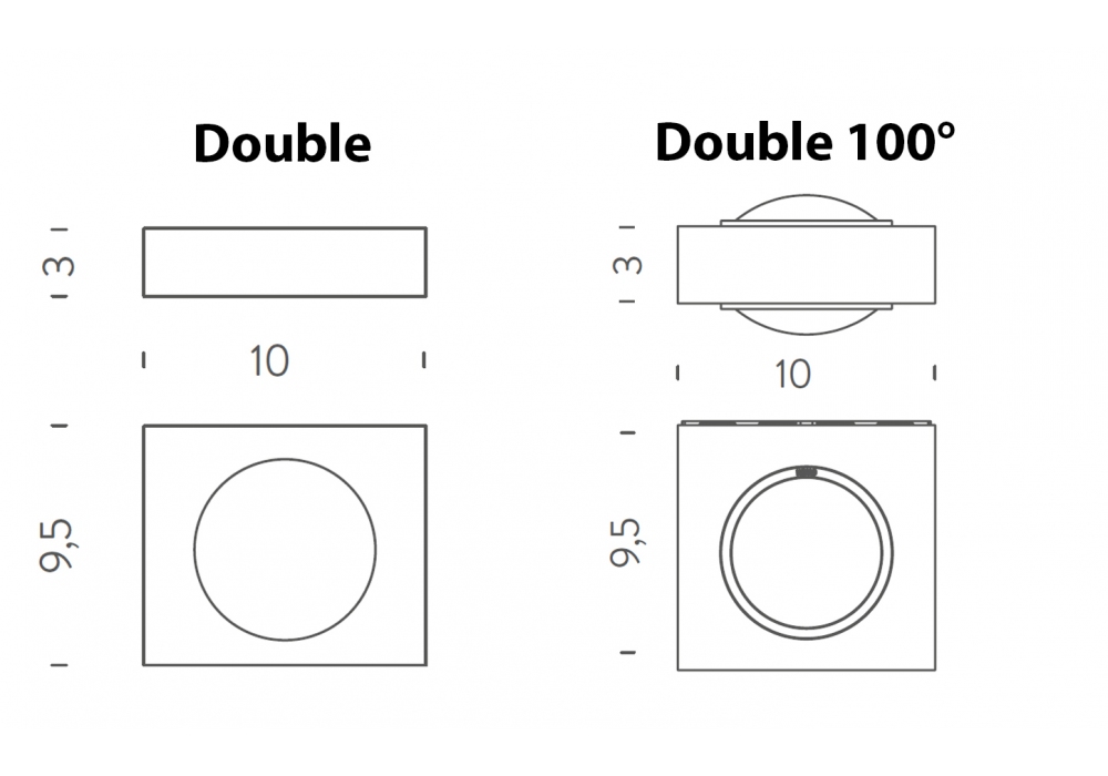 | Dimensions | 9,5 x 9,5 x H 3 cm; (double) 9,5 x 5,4 x H 3 cm. (double 100°) |