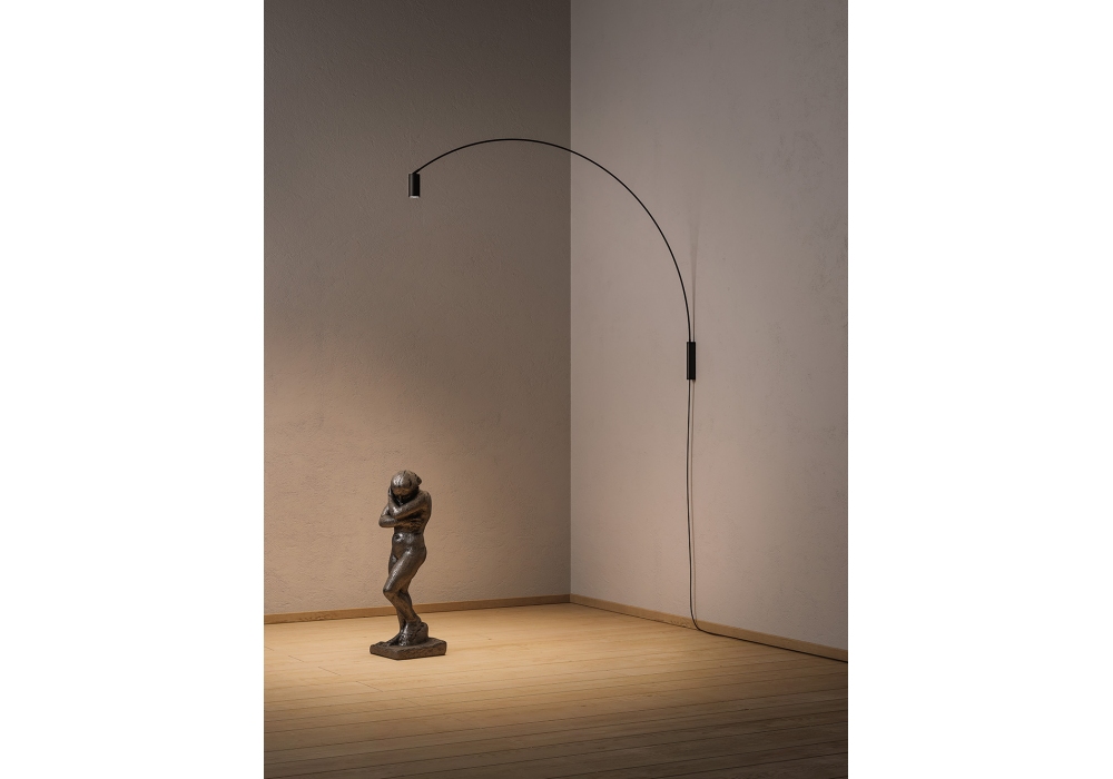 Fox conçue par Bernhard Osann pour Nemo est une applique murale orientable avec structure en acier tubulaire peint en noir mat. Le diffuseur a une forme cylindrique qui peut être déplacé sur un axe vertical de 90° et adopte une source lumineuse LED dimmable.