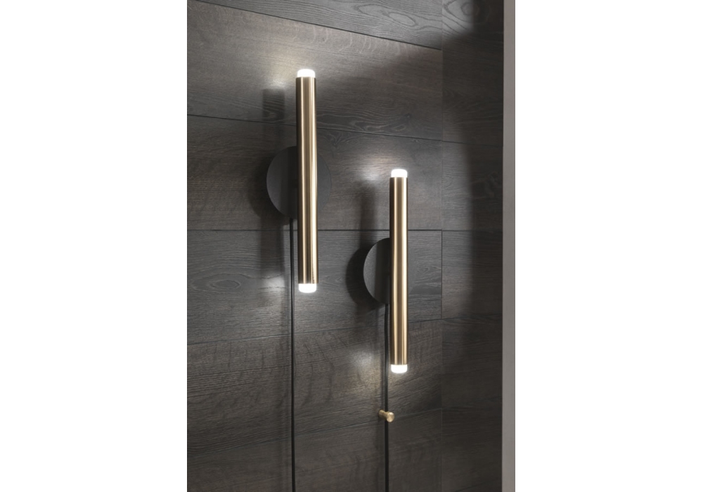 Stilo A conçue par Riflessi est une applique formée d'un métal tubulaire peint avec un traitement galvanique satiné. Disponible avec double lumière intégrée. Fixation murale en finition graphite. Câble électrique en tissu noir où il n'y a pas de fixation pour applique murale. Disponible en trois dimensions différentes.