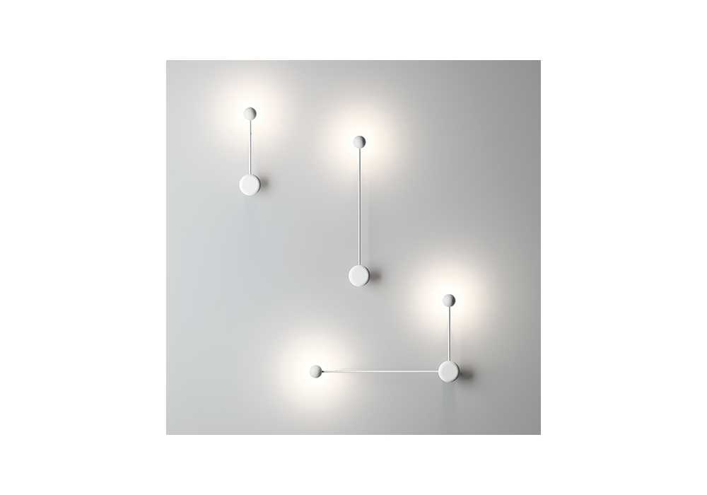 Pin conçue par Ichiro Iwasaki pour Vibia est une applique réalisée avec un ancrage mural en zamak et une structure portante en acier peint. L'abat-jour est en aluminium hémisphérique avec un diffuseur en méthacrylate et protège une source de lumière LED. Pin est disponible en différents modèles et finitions.