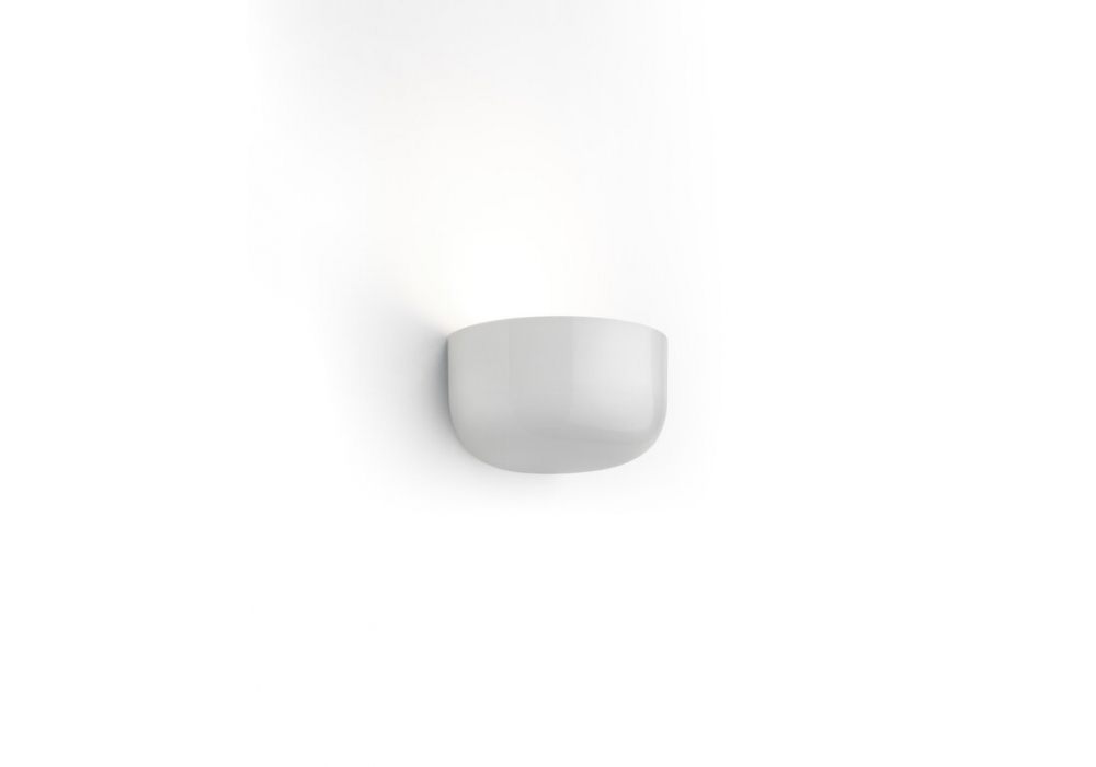 Bellhop Wall Up conçue par Edward Barber & Jay Osgerby pour Flos est une applique avec structure arrondie en aluminium peint. Le diffuseur est en polycarbonate et masque une source lumineuse à LED.