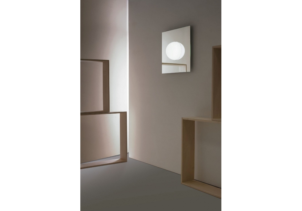 Elos conçue par Marcello Morandini pour Martinelli Luce est une applique de forme quadrangulaire structurée dans une combinaison de verre et de méthacrylate. Le diffuseur est composé d'un hémisphère en méthacrylate blanc opale et adopte une source lumineuse LED dimmable intégrée.