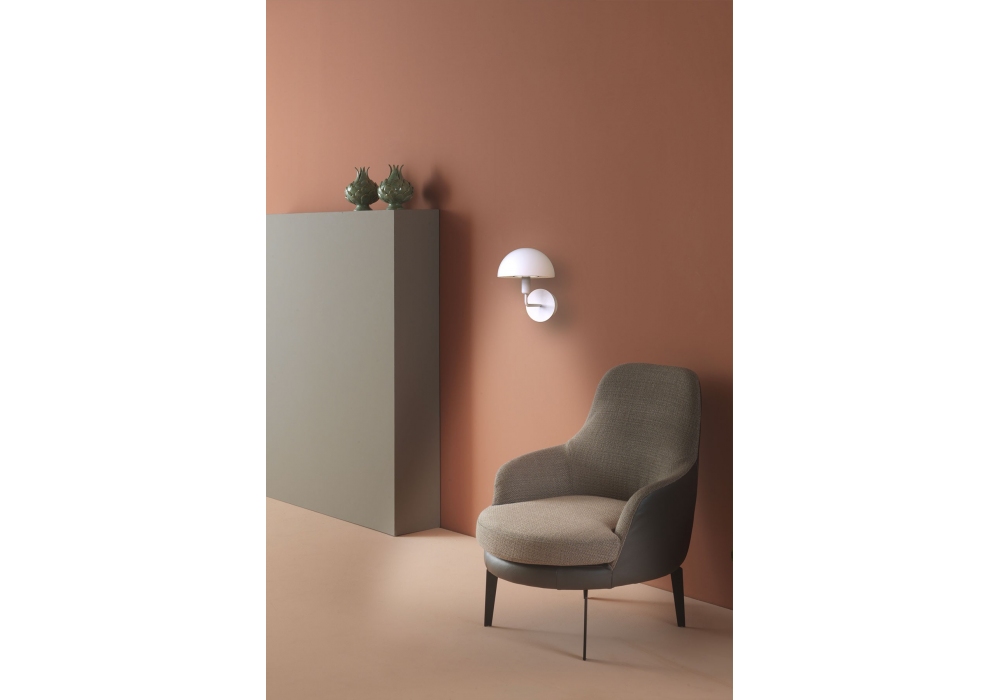 Amedeo conçue par Franco Zavarise pour pour Zava est une applique en fer. Il est possible de personnaliser l'intérieur du diffuseur avec différentes finitions peintes ou à la feuille.