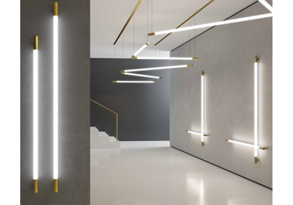 Cosima conçue par Cédric Davies pour Zava est une applique / plafonnier en méthacrylate et laiton. L'appareil est disponible avec deux longueurs d'entretoises différentes, de sorte qu'il peut être monté en croix pour la création de compositions multiples. Il est possible de choisir entre la version intérieure ou extérieure. Alimentation Marche/Arrêt à distance ou DALI/Push incluse. Disponible en différentes dimensions.