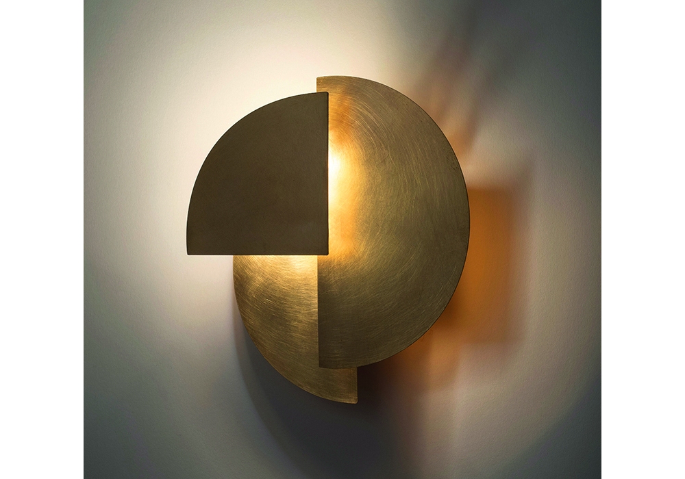 Celest XL conçue par Ombre Portée est une applique réalisée en laiton brossé et ciré.