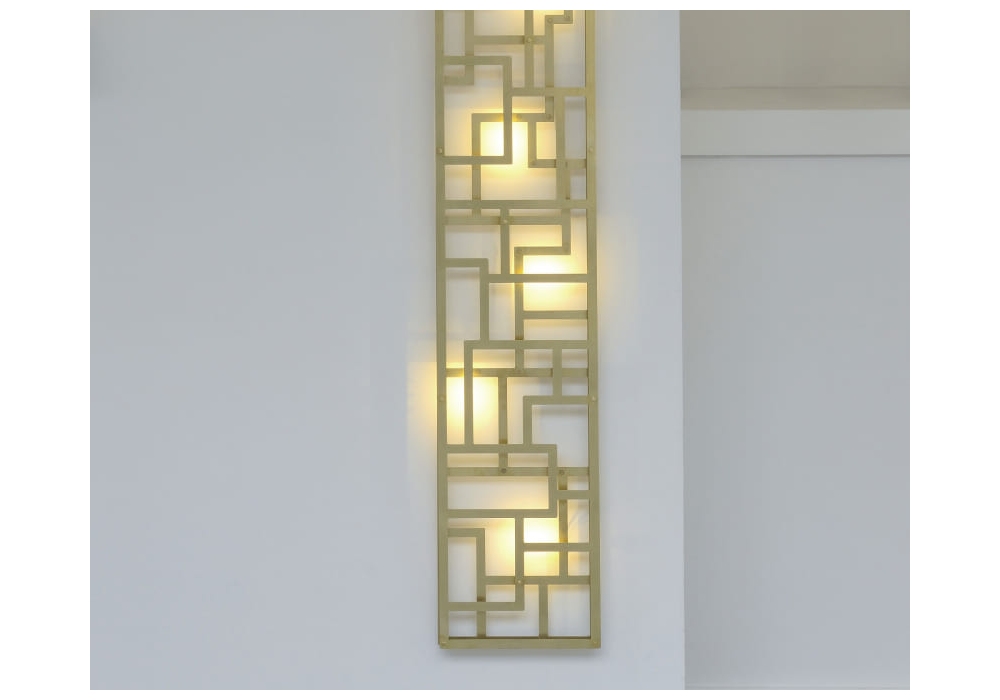 Labyrinthe conçue par Ombre Portée est une applique modulable en laiton brossé et ciré.