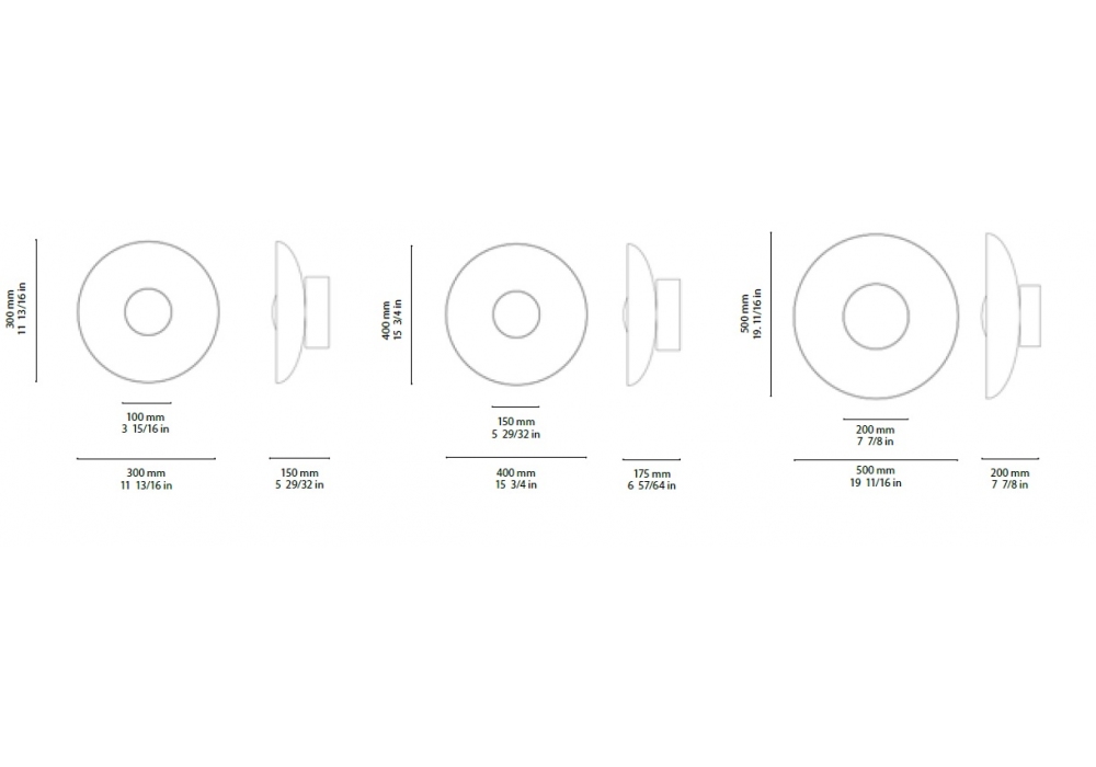 | Dimensions | Ø 30 x 15 cm; Ø 40 x 17.5 cm; Ø 50 x 20 cm. |