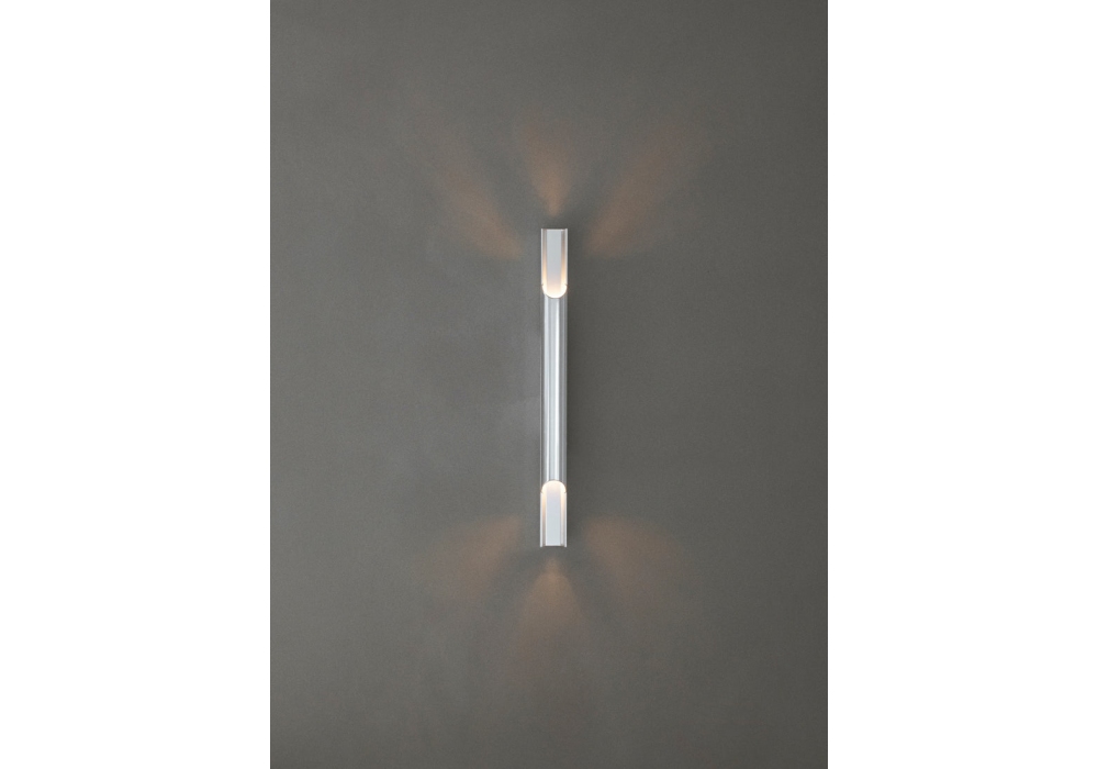 Pan conçu par Bent Karlby pour Lyfa est une applique en aluminium poli, sa forme est inspirée de la flûte de pan. Disponible en différentes tailles.