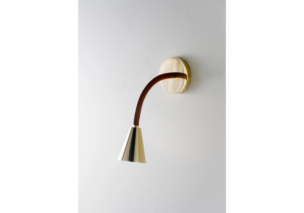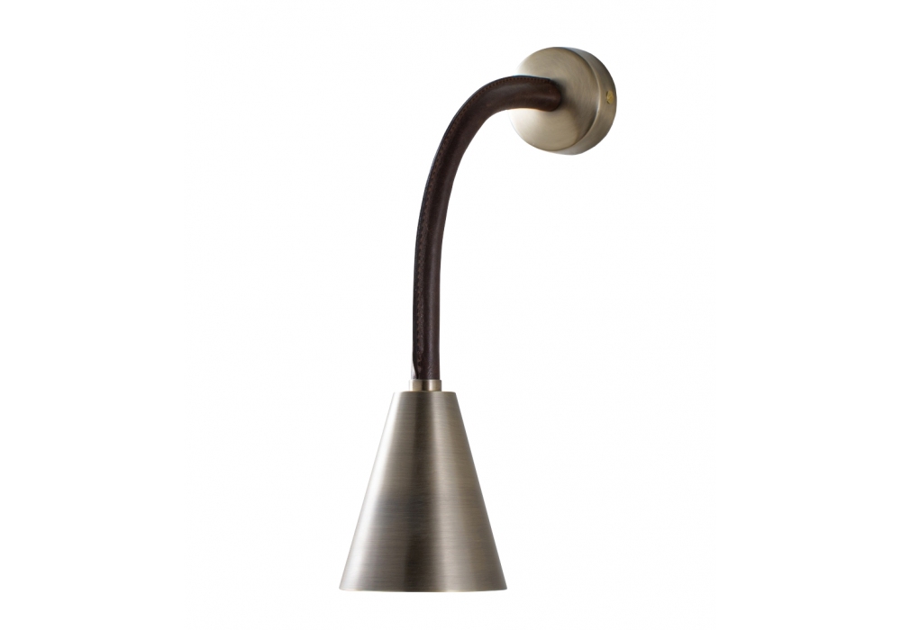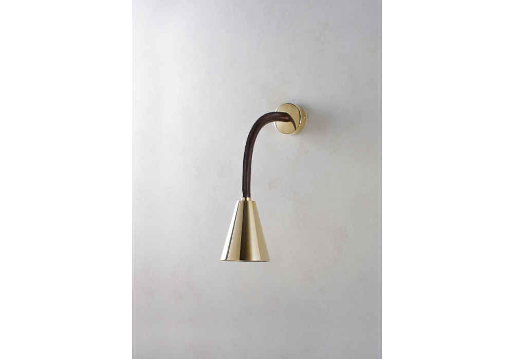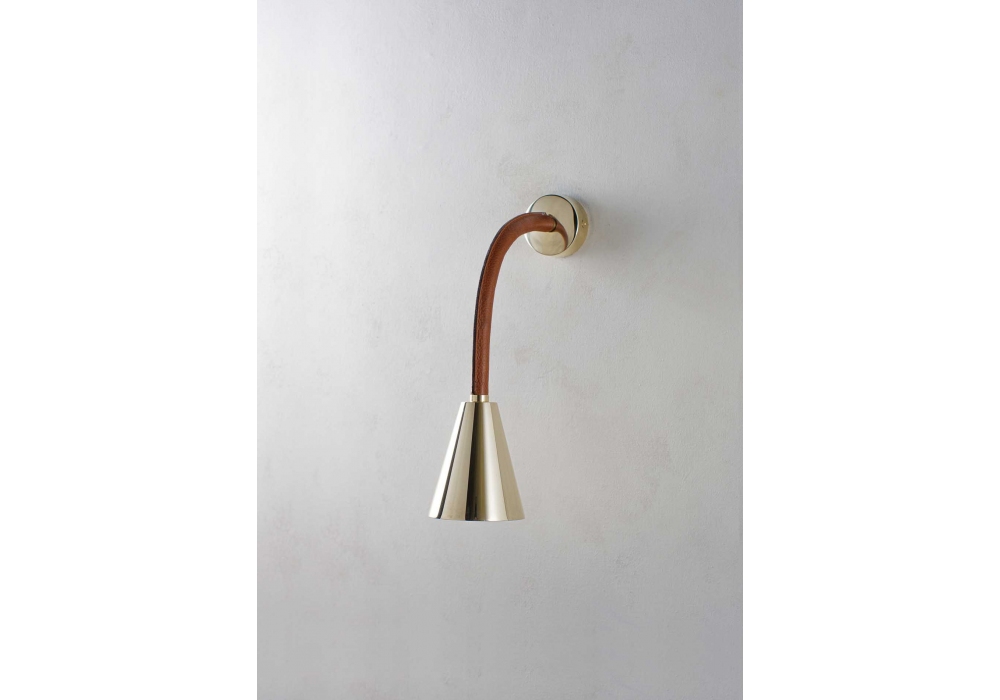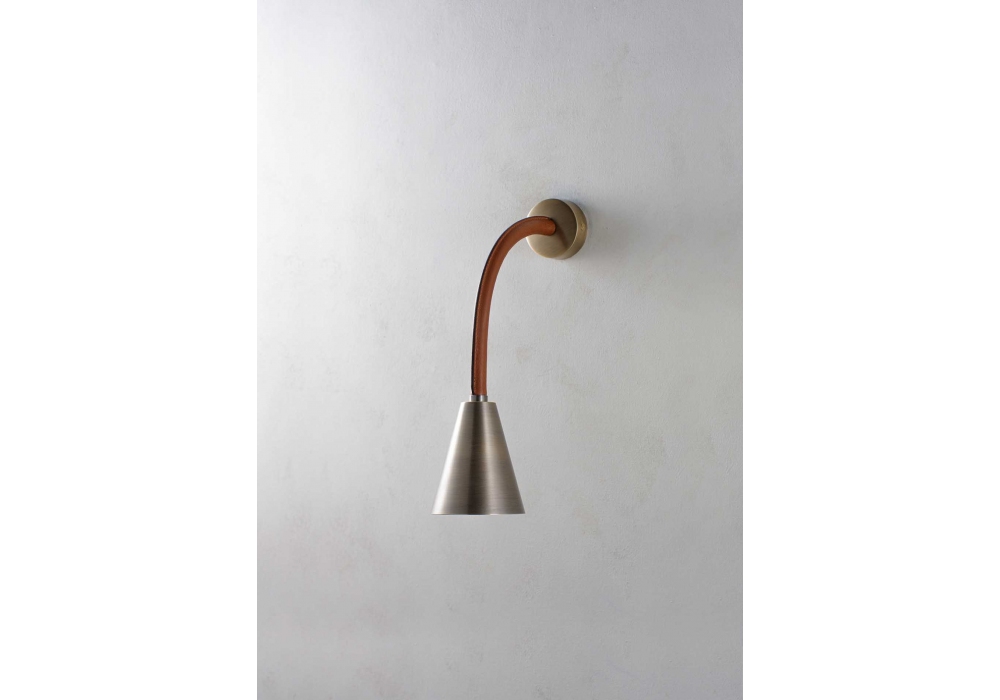 Huxley Flexible conçue et produite par Porta Romana est une applique structurée par un bras mobile en métal recouvert de cuir. L'abat-jour a une forme conique en métal et abrite une source lumineuse avec une connexion LED de type G9. Huxley Flexible est disponible en différentes finitions de cuir et de métal.