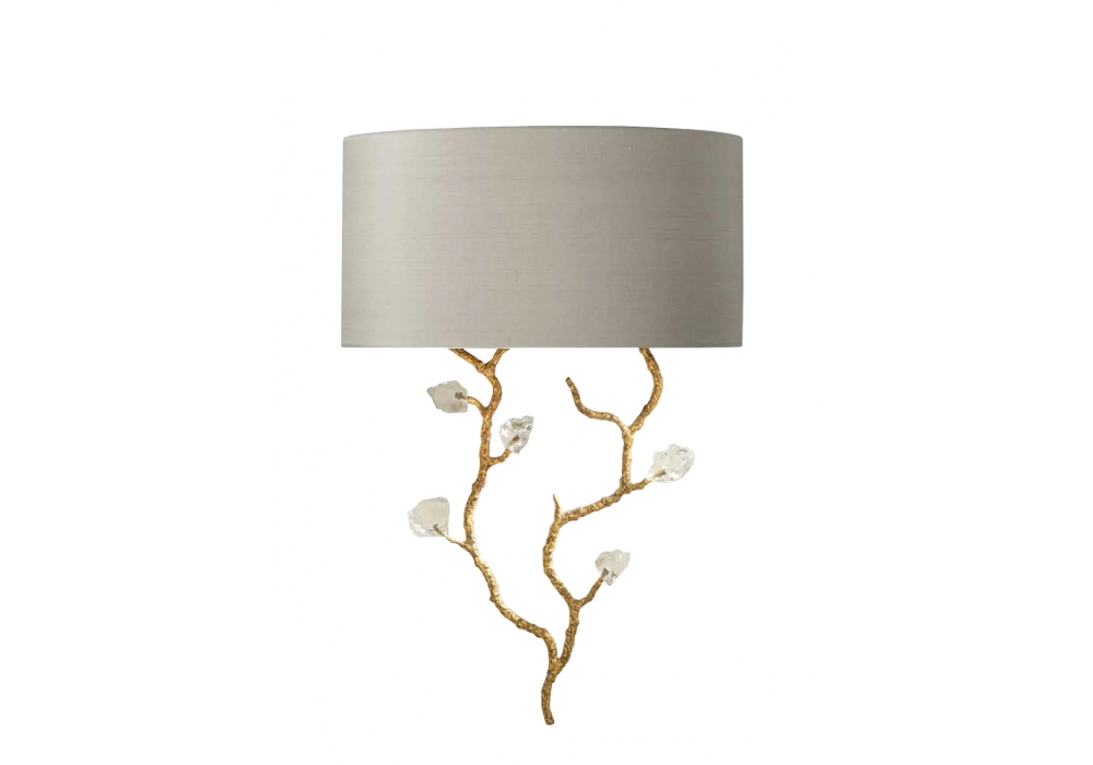 Trailing Blossom produit et conçu par Porta Romana est une applique avec structure portante en acier forgé peint et détails en verre transparent. L'abat-jour est semi-circulaire en tissu et abrite une source lumineuse avec une connexion LED de type G9. Trailing Blossom est disponible en différentes finitions de structure et d'abat-jour.