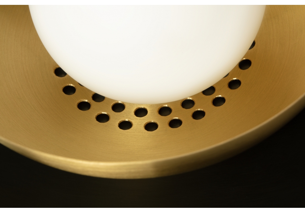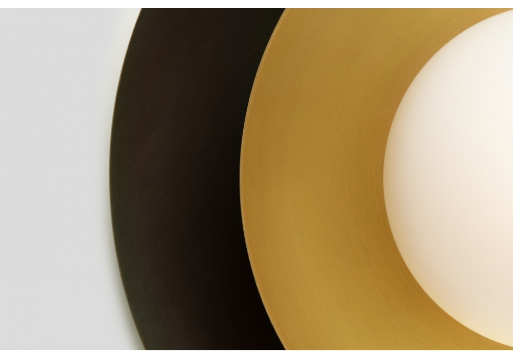 Carapace conçue par CTO Lighting est une applique/plafonnier en bronze et laiton satiné et abat-jour en verre opale.