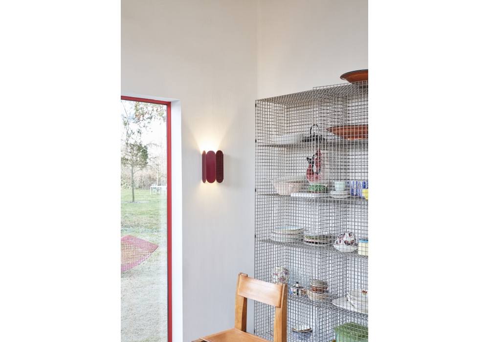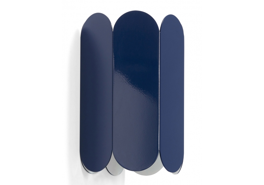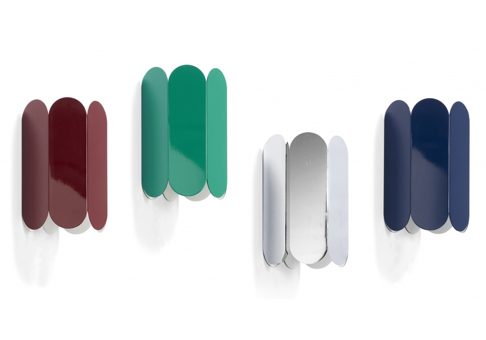 ARCS Sconce conçue par Muller Van Severen pour Hay est une applique en tôle d'acier emboutie et pliée avec finition polie ou plaquée miroir et jonction murale en tôle blanche avec finition effet mouillé. Disponible en différentes finitions.
