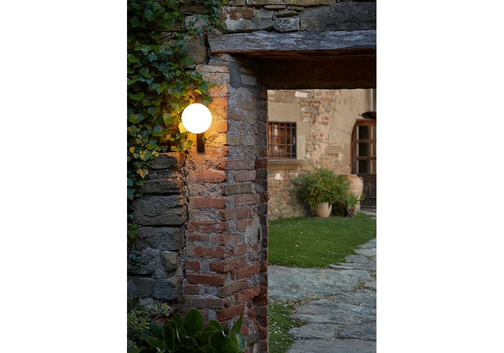 Circ Outdoor conçue par Nahtrang Studio pour Estiluz est une applique à structure quadrangulaire en métal peint. Le diffuseur est structuré par une demi-sphère en verre opale translucide avec source lumineuse LED intégrée avec système de gradation triac. Circ Outdoor est disponible en différentes finitions de structure.