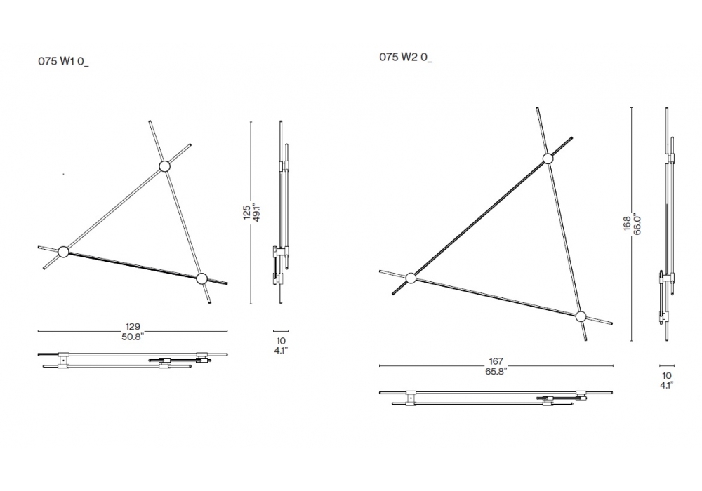 ITIE Triangle Vertical Wall conçue par Tobia Scarpa pour Cassina est une applique réalisée en aluminium et PC, avec des joints en métal laqué en différentes finitions. Composé de trois bandes de LED.