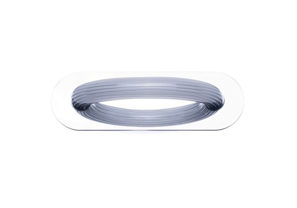 Oort conçue par Jacopo Roda pour Fontana Arte est une applique/plafonnier avec fixation murale elliptique en miroir. Le diffuseur est caractérisé par un verre borosilicaté tubulaire à l'intérieur duquel sont placés des tubes lumineux à LED flexibles. La lampe a diffusé une lumière Push dimmable disponible à 3000K ou Dim To Warm de 1800K à 4000K.