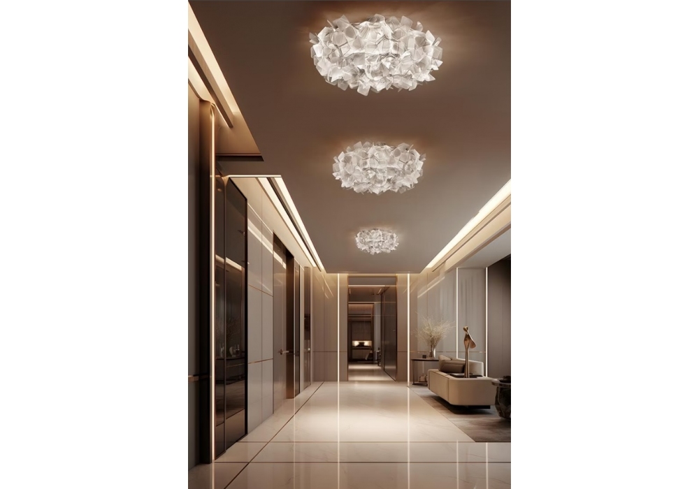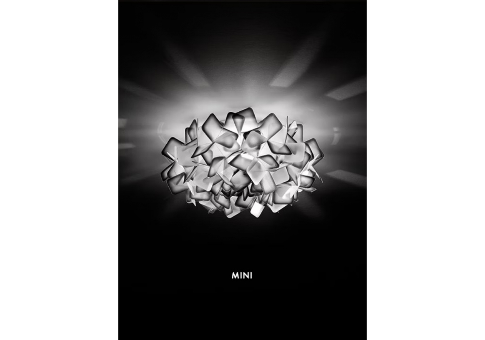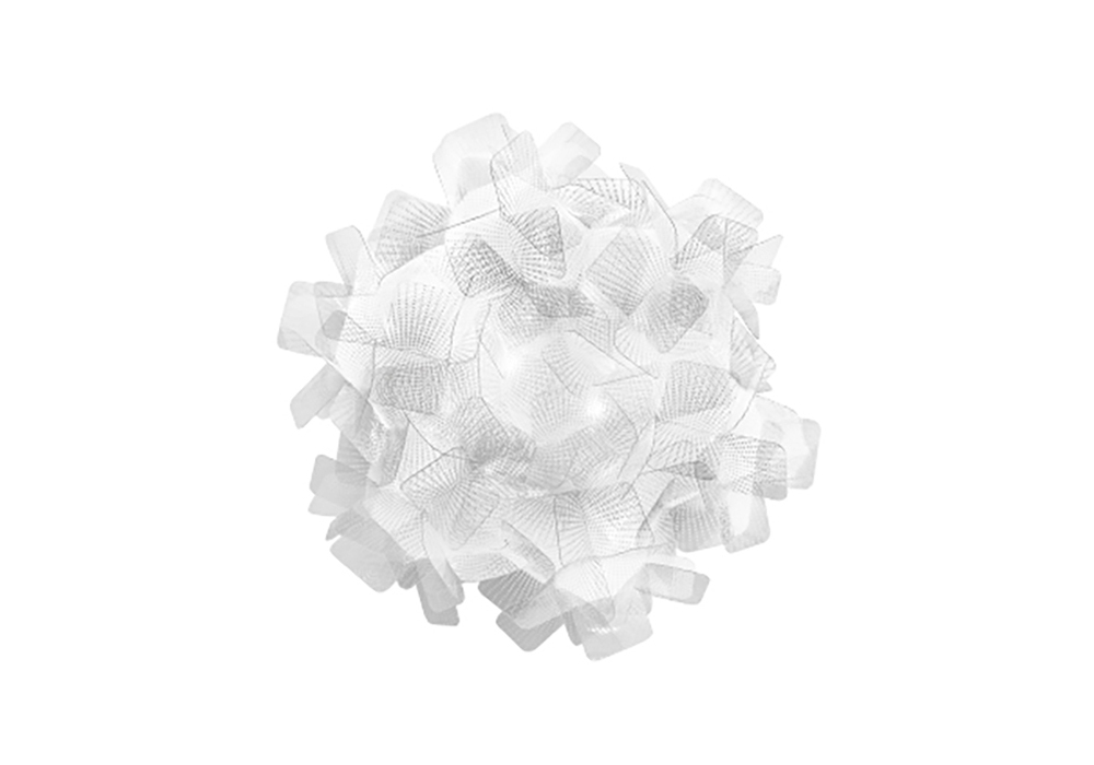 Clizia Small conçue par Adriano Rachele pour Slamp est une applique ou plafonnier avec une forme abstraite réalisée en Opalflex®; Cristalflex® ou Lentiflex®. La source lumineuse utilisée est de type LED à filament dimmable. Clizia Small est disponible en trois tailles différentes.