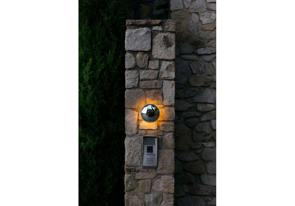 Babila Outdoor conçue par Marco Zanuso Jr pour Marset est une applique/plafonnier d'extérieur, réalisée en acier inoxydable poli, disponible en différentes finitions et tailles.