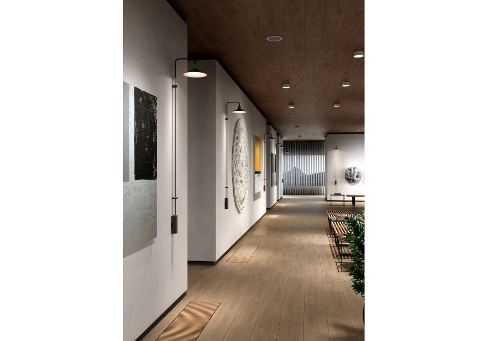 Platet 5 conçue par Christophe Mathieu pour Bover est une applique d'extérieur avec structure de support et porteuse en aluminium peint, laiton et fer. L'abat-jour a une forme arrondie et protège une source de lumière LED à intensité variable. Platet 5 est disponible en différentes finitions d'abat-jour et en versions dimmables.