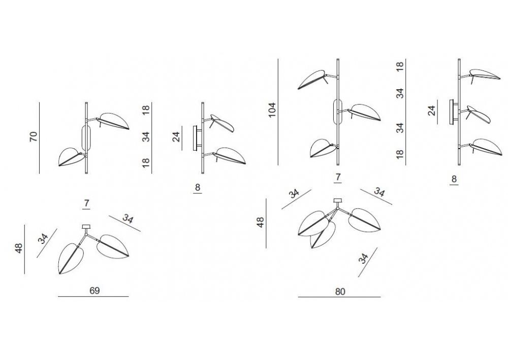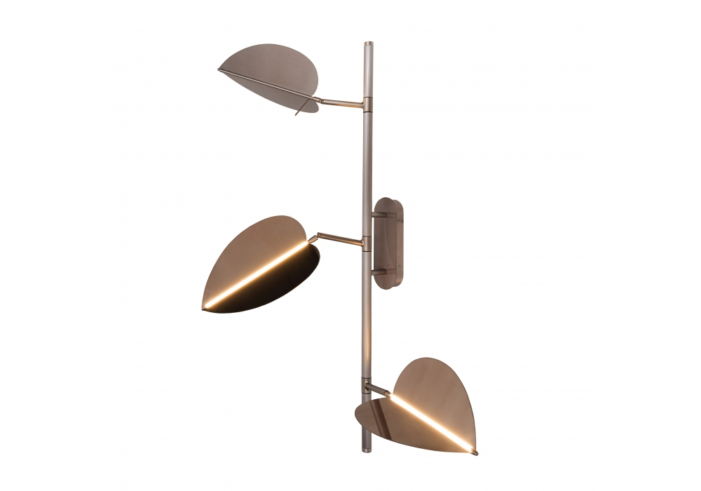 Aracea conçue par Gupica pour Visionnaire est une lampe à suspension avec rosace circulaire et tige verticale en acier peint. Les diffuseurs sont en forme de feuille et peuvent être tournés et inclinés pour diffuser la lumière à volonté. Dans la partie centrale de chaque feuille se trouve une source lumineuse LED linéaire à haute efficacité. Aracea est disponible en différentes finitions.