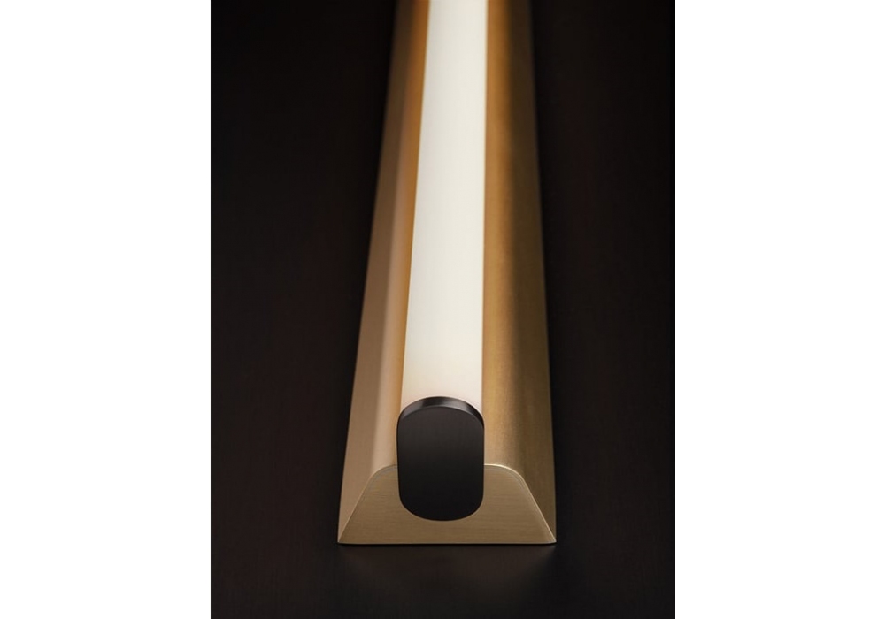 IP Metrop conçue par Émilie Cathelineau pour CVL Luminaires est une applique réalisée en laiton massif, diffuseur en polycarbonate satiné et bande LED sans points visibles. Disponible en différentes finitions et dimensions.