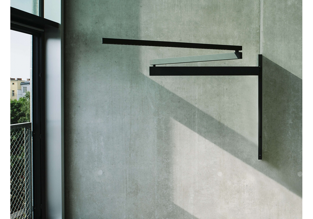 Black Flag conçue par Konstantin Grcic pour Flos est une applique structurée par différents bras quadrangulaires mobiles en aluminium peints en noir. La tête a un corps quadrangulaire en aluminium avec un diffuseur en polycarbonate et protège une source de lumière LED à intensité variable. Black Flag est disponible en différentes versions.
