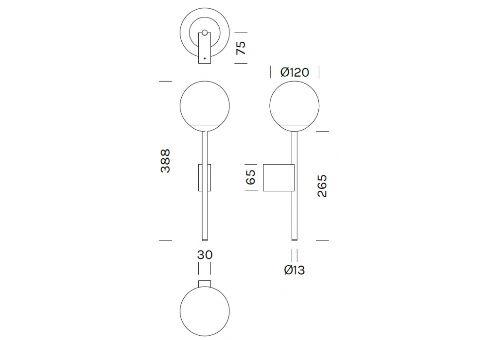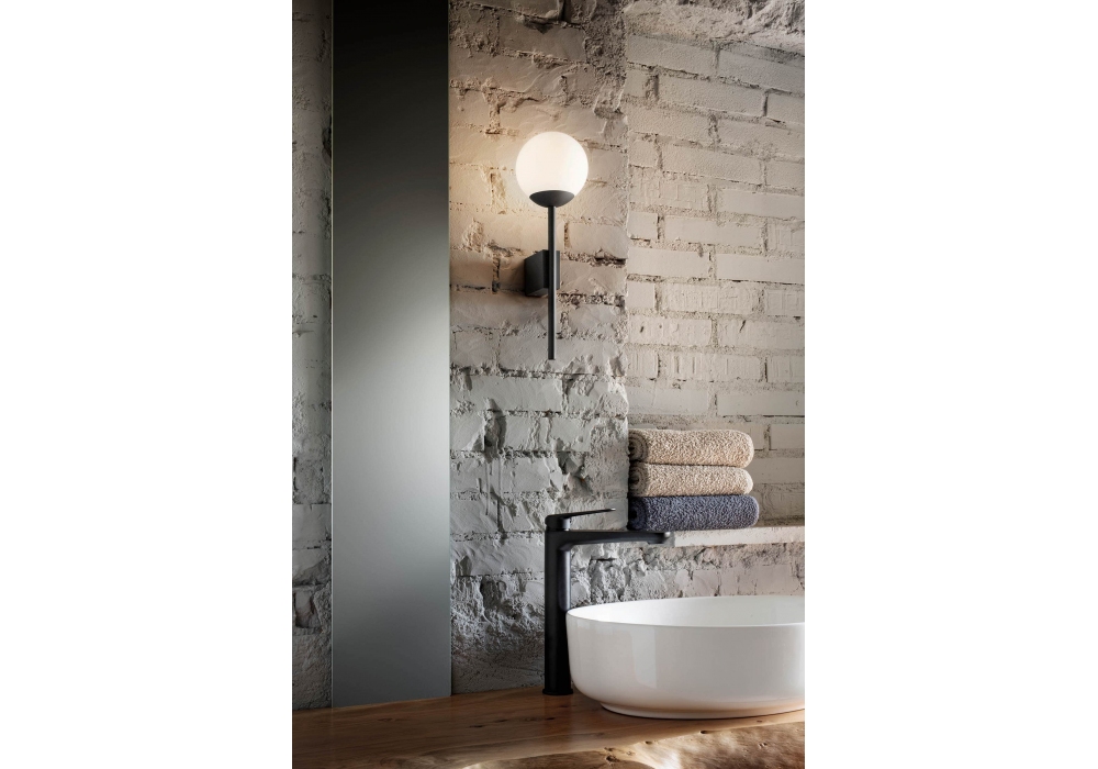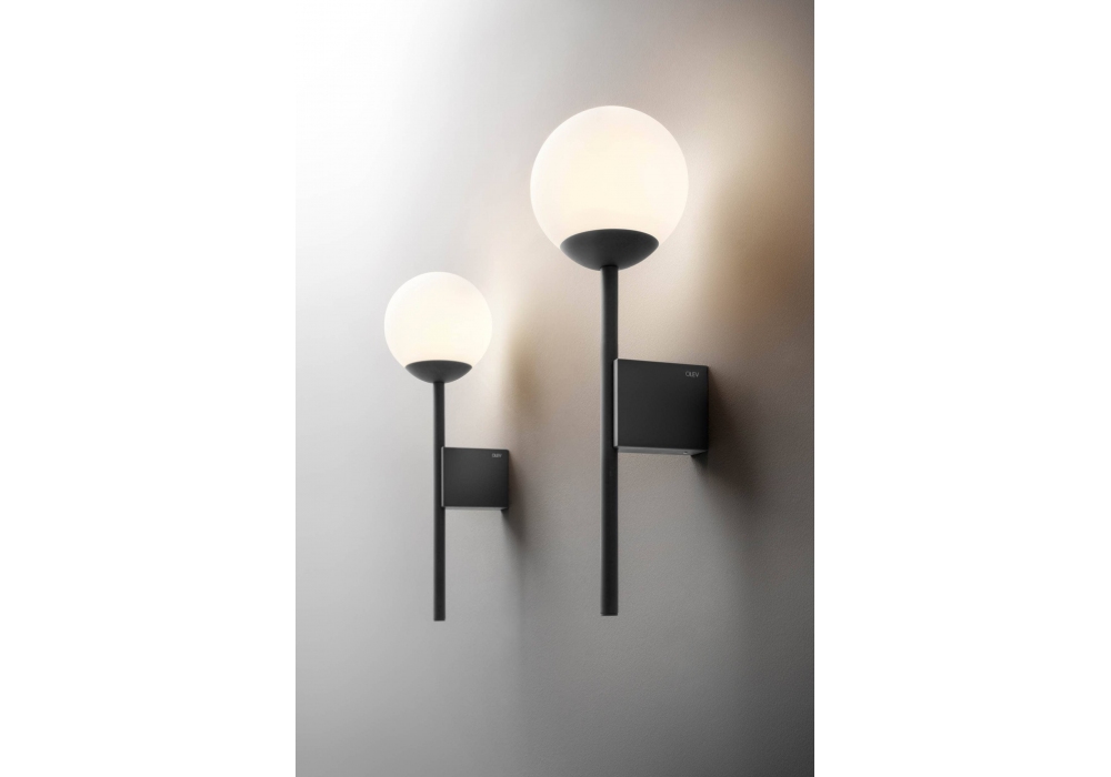 La Pallina AP conçue par Beppe Tizian pour Olev est une applique réalisée en fer et verre soufflé opalin.