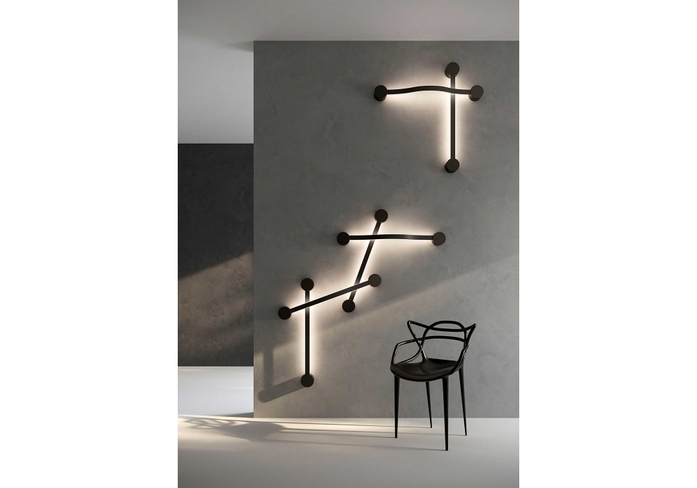 Segmento conçue par Indefinito Design Studio pour Olev est une applique flexible en aluminium et acier, qui peut créer des combinaisons infinies de formes.