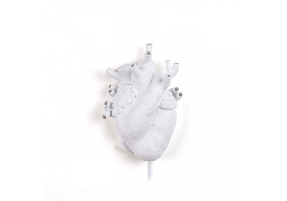 Heart conçue par Marcantonio pour Seletti est une applique en porcelaine blanche très fine qui représente l'anatomie d'un cœur humain. La source lumineuse adoptée est de type LED alimentée par un câble en plastique.