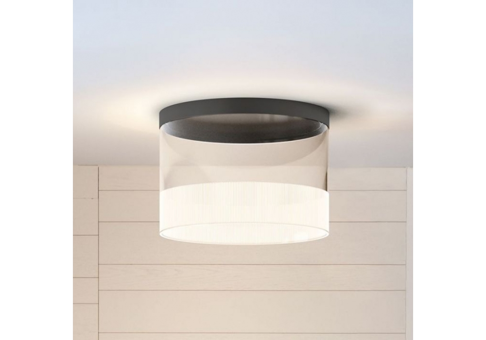 Guise conçue par Stefan Diez pour Vibia est un plafonnier avec corps en aluminium peint couleur graphite. Le diffuseur est en verre borosilicaté cylindrique et protège une source de lumière LED avec un système dimmable. Guise est disponible en différents modèles et versions de contrôle de la luminosité.
