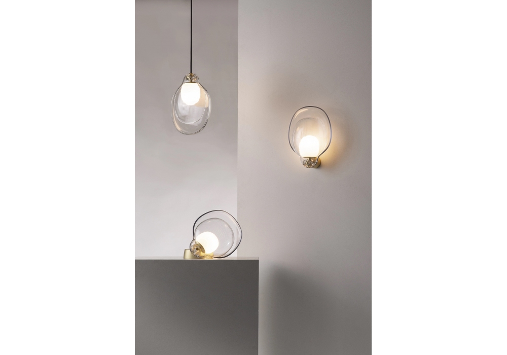 Petal conçue par Sebastian Herkner pour Rakumba est une applique caractérisée par des parties métalliques aux finitions dorées ou noires, abat-jour en verre. Disponible en différentes finitions et tailles.