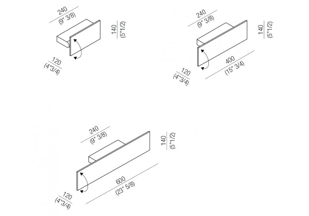 | Dimensions | 24 x 12 x H 14 cm; 40 x 12 x H 14 cm; 60 x 12 x H 14 cm. |