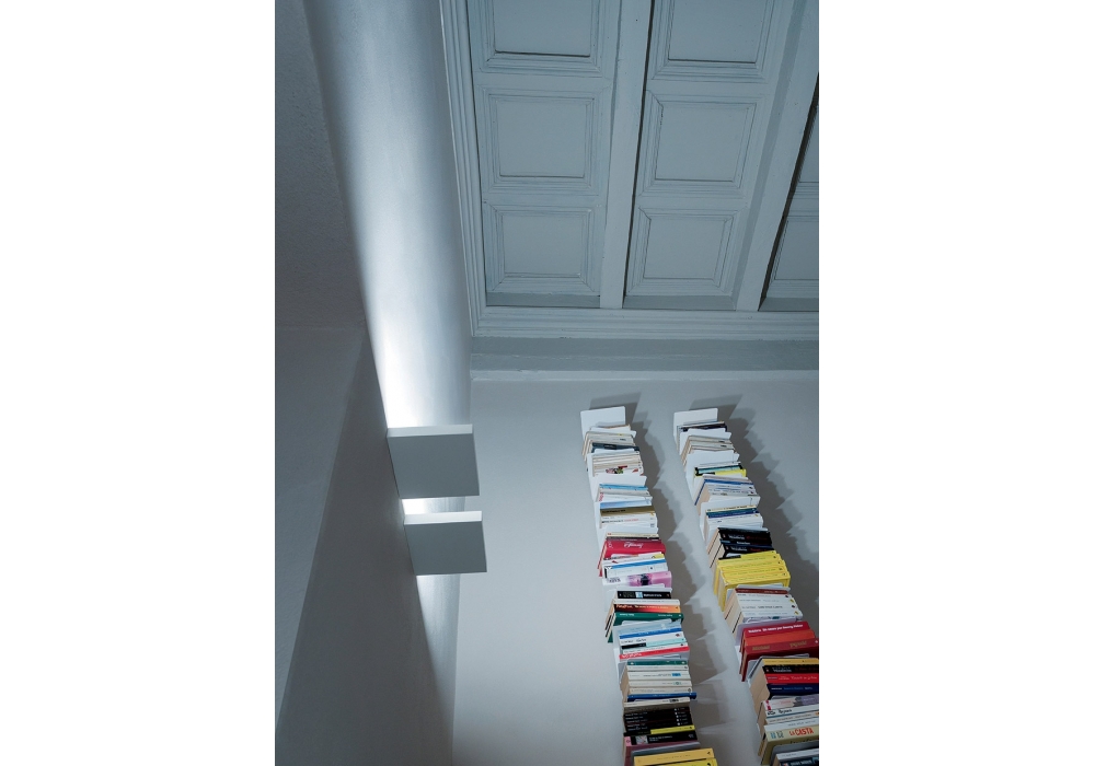 Sol 1 conçue par Omar Carraglia & Davide Groppi pour Davide Groppi est une applique de forme carrée en métal peint. Disponible en différentes finitions.