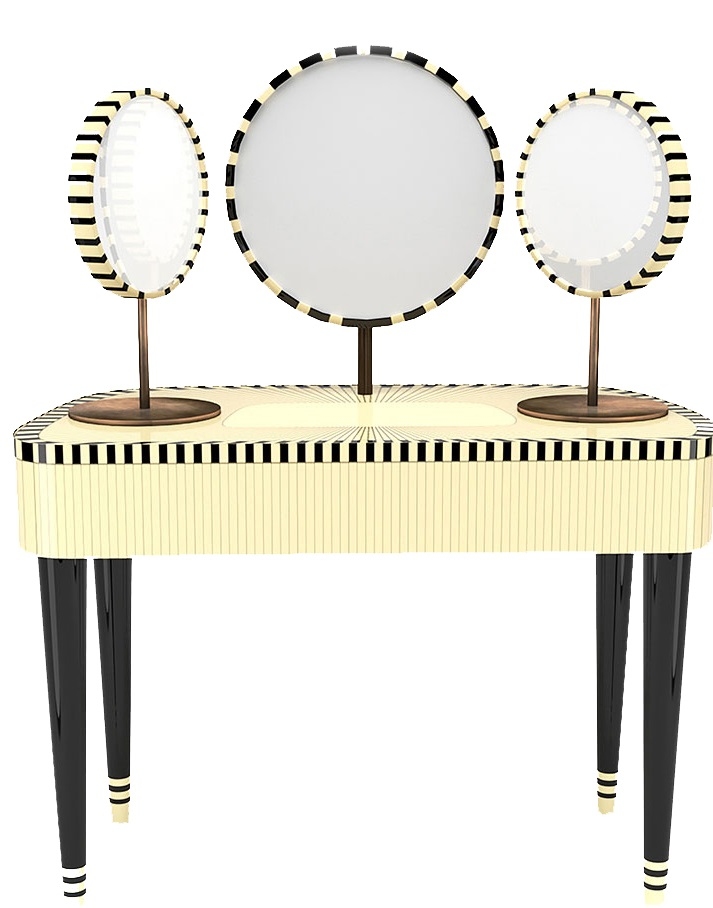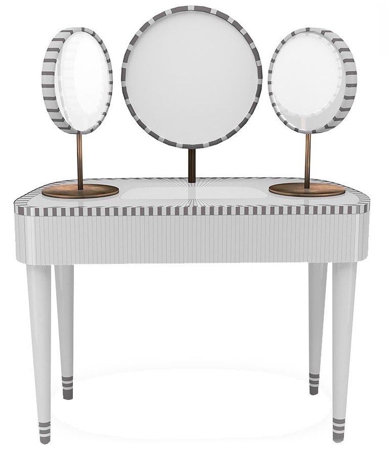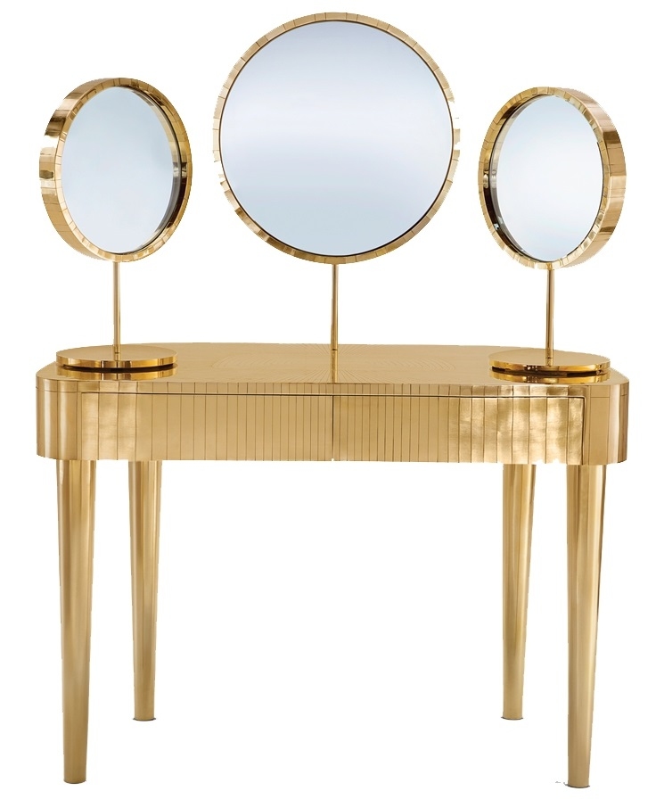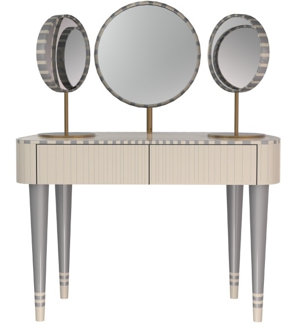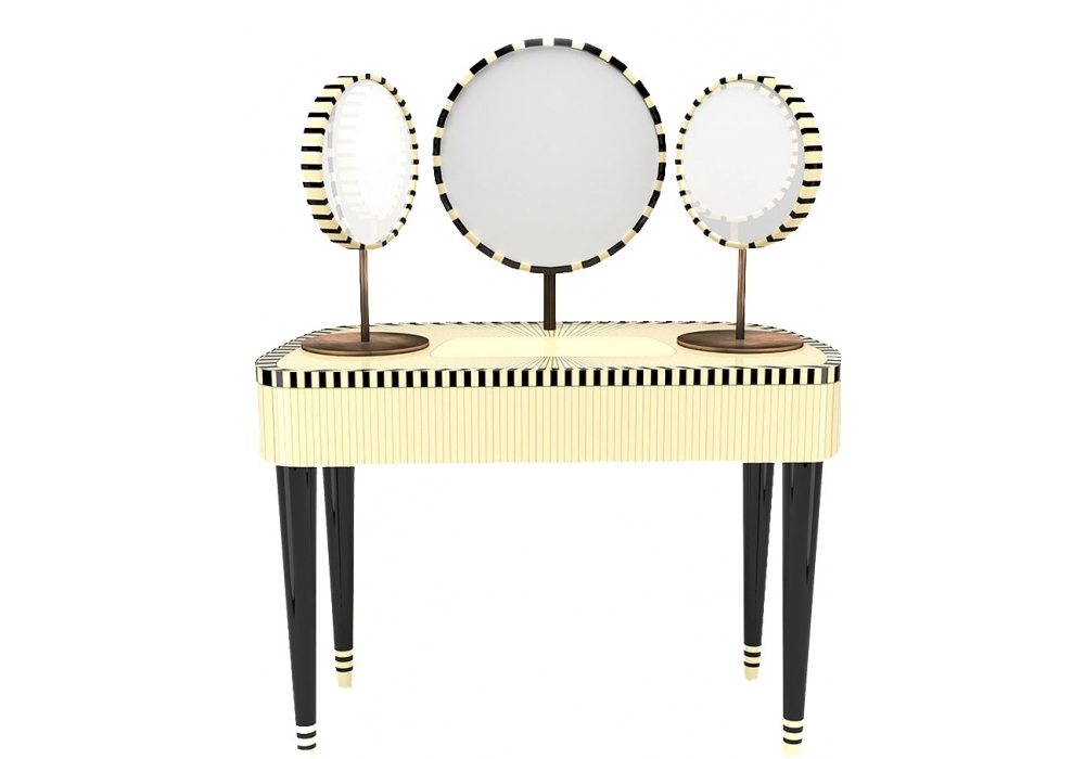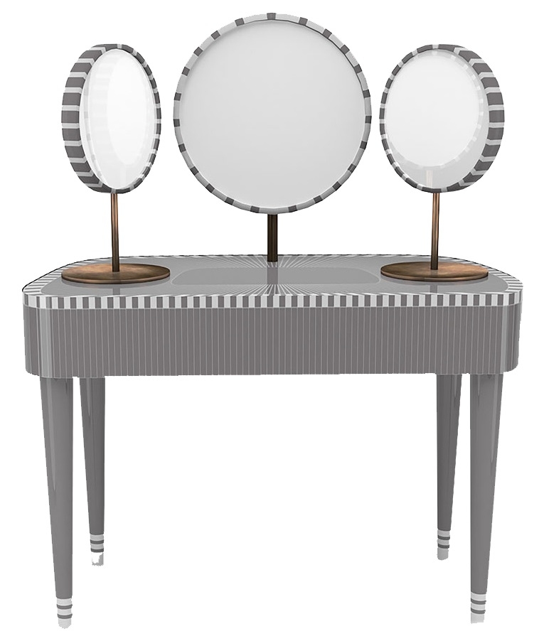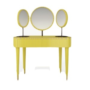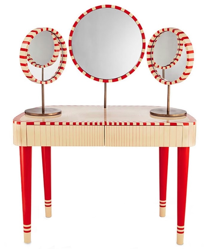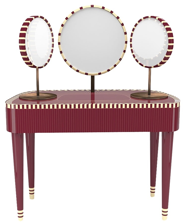 Woman In Paris conçue par Matteo Cibic pour Scarlet Splendor est une coiffeuse réalisée en MDF, contreplaqué et laiton. Disponible en différentes finitions.