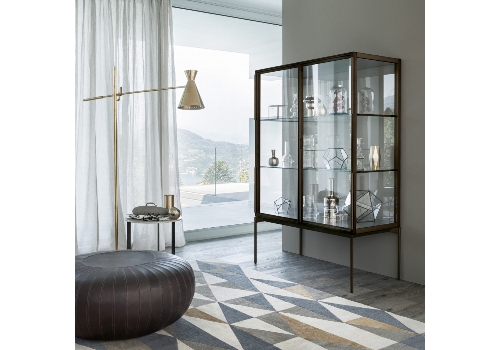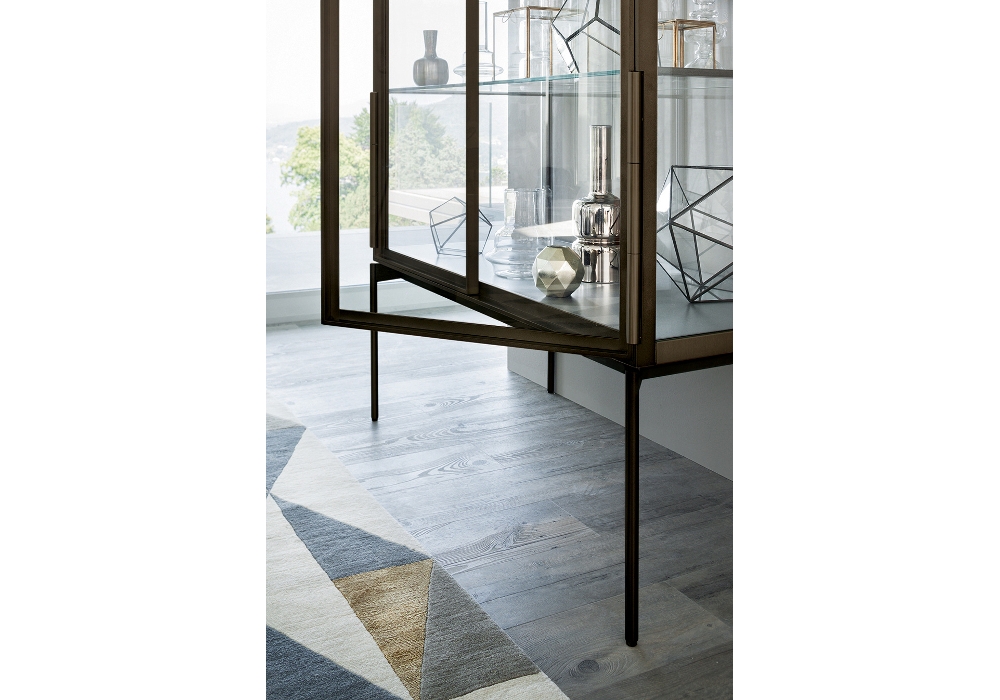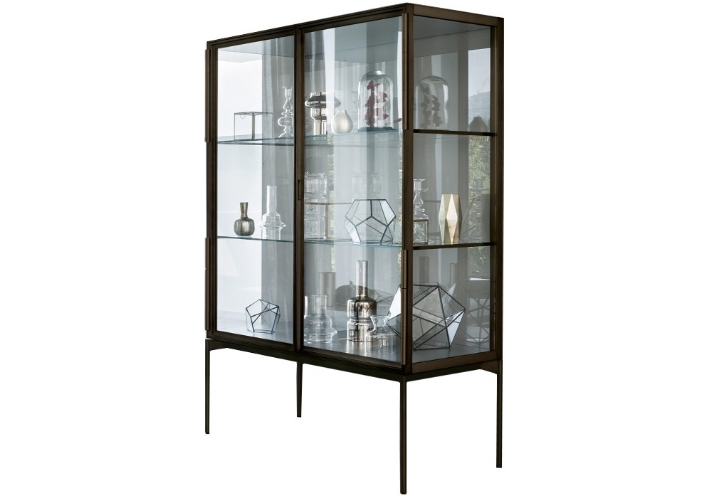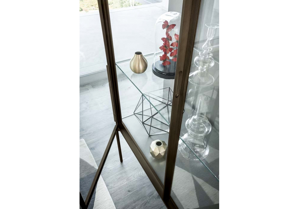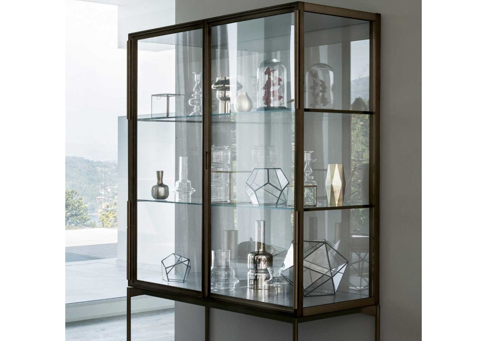 Galerist conçue par Christophe Pillet pour Lema est une une vitrine en verre extralight et structure en métal verni bronze.