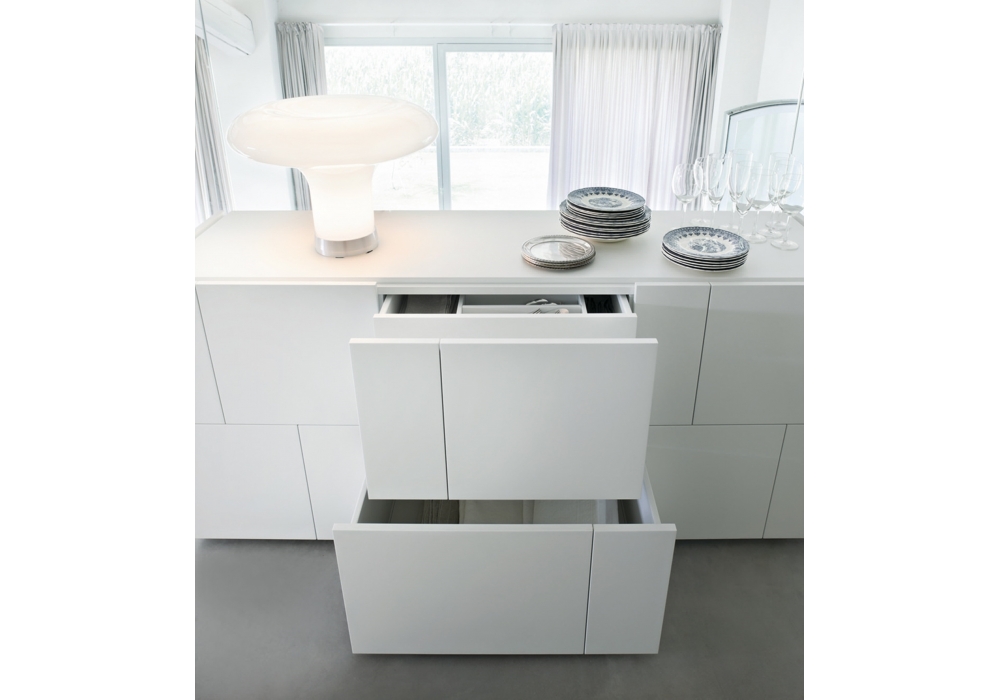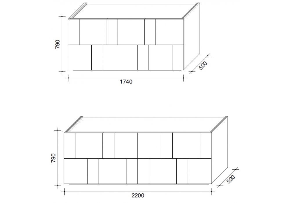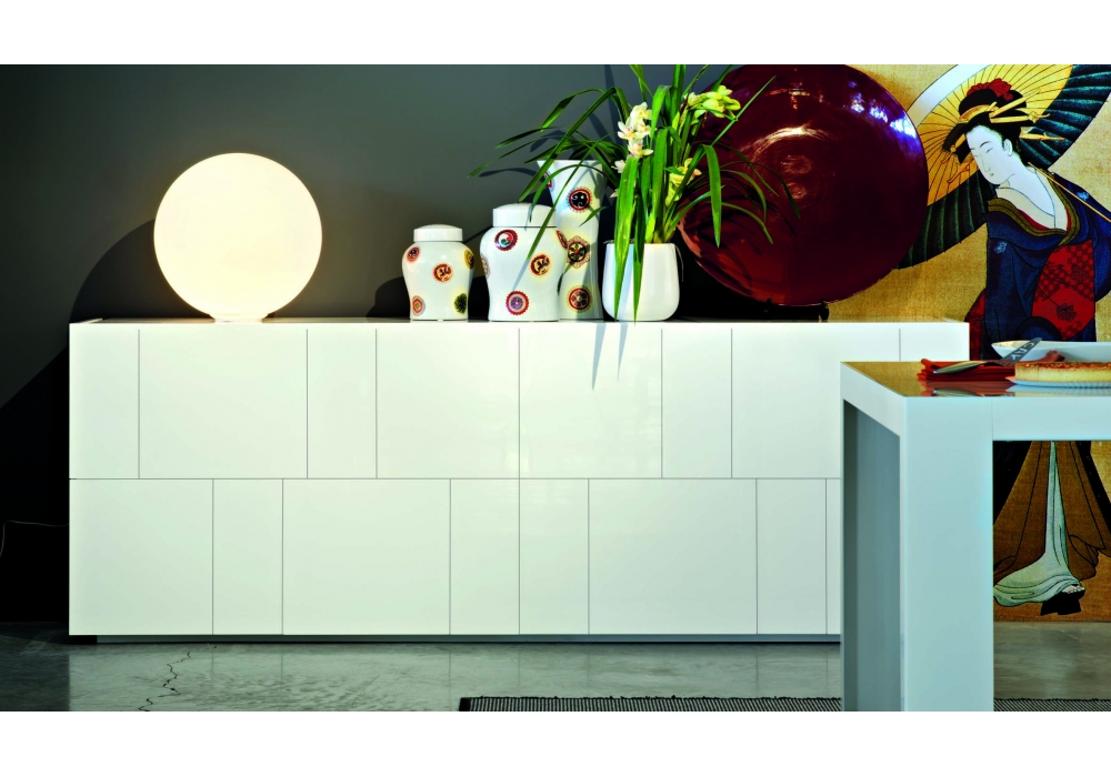 Ortelia conçue par Marelli & Molteni pour Lema est un buffet avec deux étagères en bois. Disponible en différentes finitions.