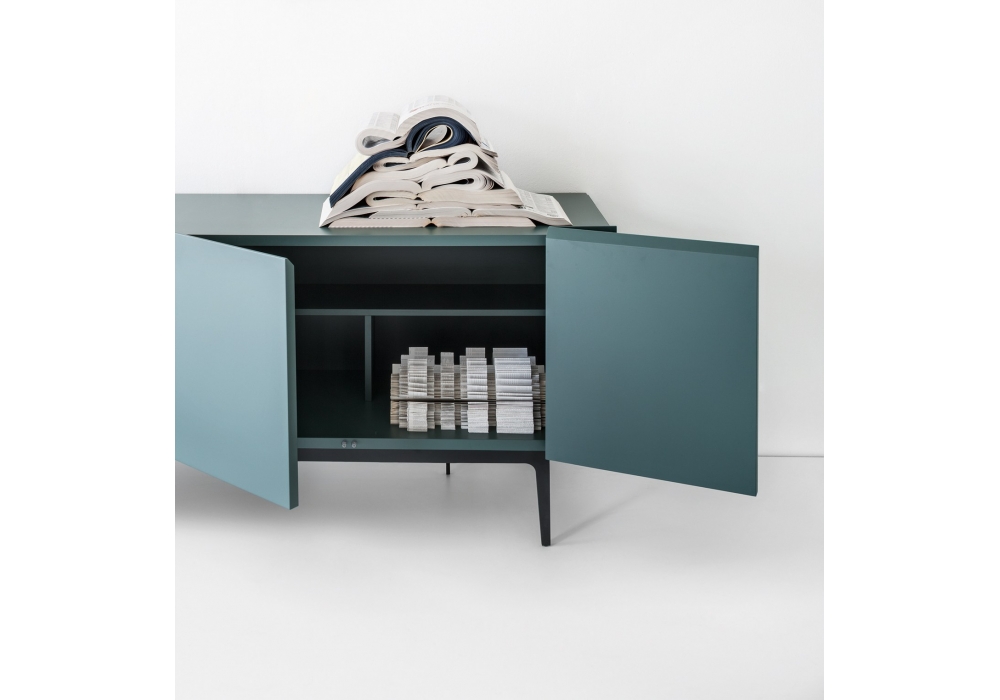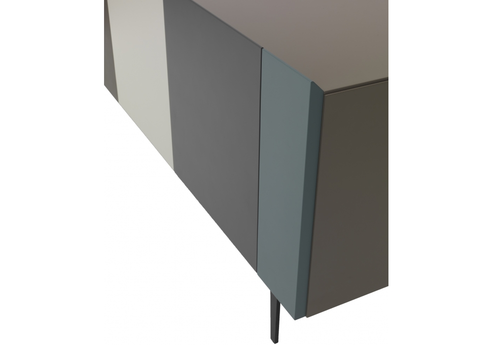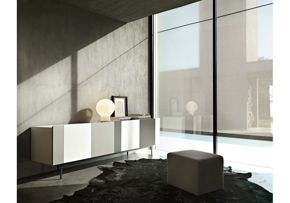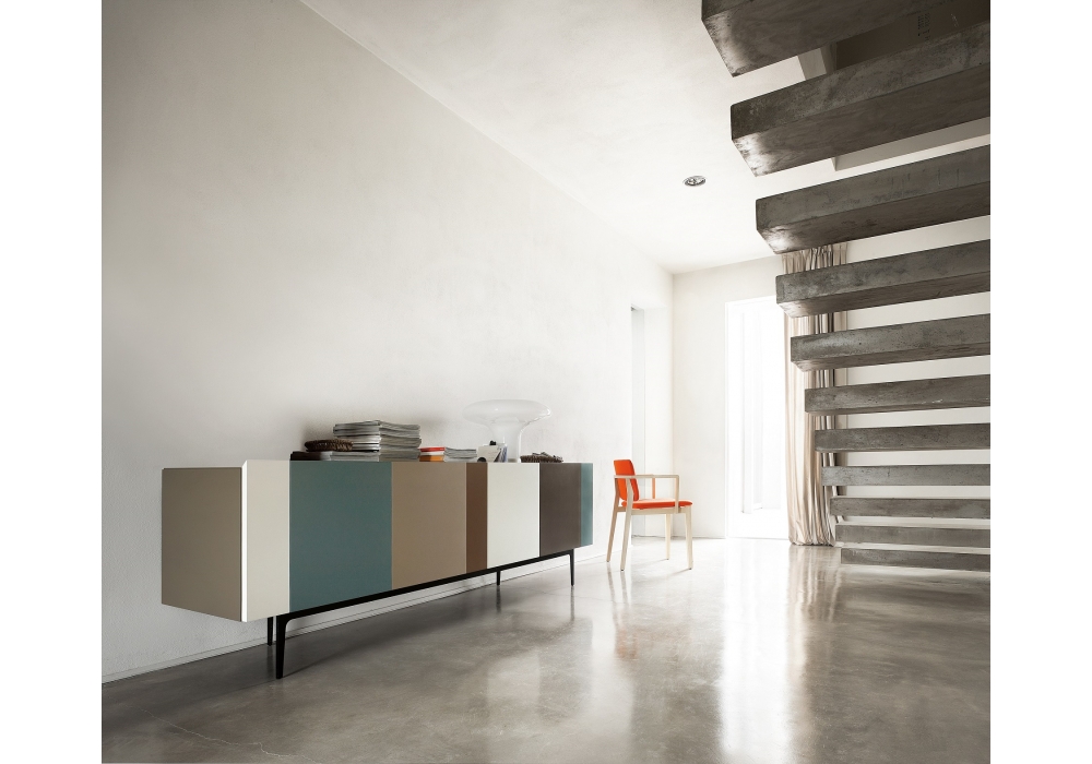 Rainbow conçue par Roberto Lazzeroni pour Lema est un buffet avec une étagère en bois. Les portes et le structure en bois laqué peuvent être peints en une seule couleur, ou dans deux combinaisons différentes: avio, cacao, grafite, sabbia et caffè ou pomice et carta fumo. Une attention particulière est portée aux détails comme le pratique à 180 ° l'ouverture des portes.