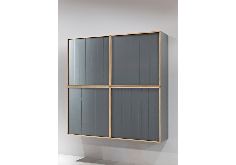 Amadeus conçu par Andrea Parisio pour Meridiani est un cabinet mural en bois avec quatre portes. Disponible en version en chêne (structure extérieure et intérieure, portes et insertions en chêne teinté black) et version en laque (finitions pour les portes laque mate ou brillante, finitions structure extérieure et intérieure laque mate