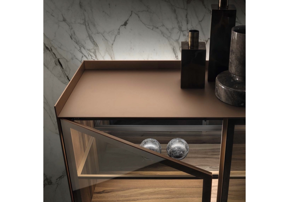 Self Bold conçu par Giuseppe Bavuso pour Rimadesio est un beau buffet avec un design simple et pure, lignes absolues et nettes, surfaces harmonieuses et uniformes. La géométrie absolue et la capacité de s’accoupler aux autres collections, permettent à Self bold de s’adapter avec élégance et personnalité à tous les espaces.