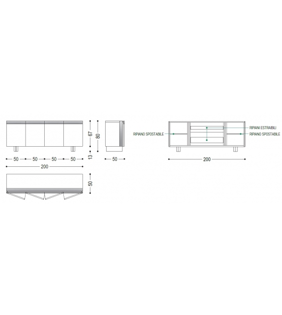 Linear conçu par David Knott pour Riva 1920 est un buffet avec structure extérieure et portes en bois. Deux portes latérales avec étagère en verre transparent. Deux portes centrales avec deux étagères intérieures extractibles. Gorge pour prise de main. Éclairage led à l’intérieur. Poignées et bande en fer laqué.