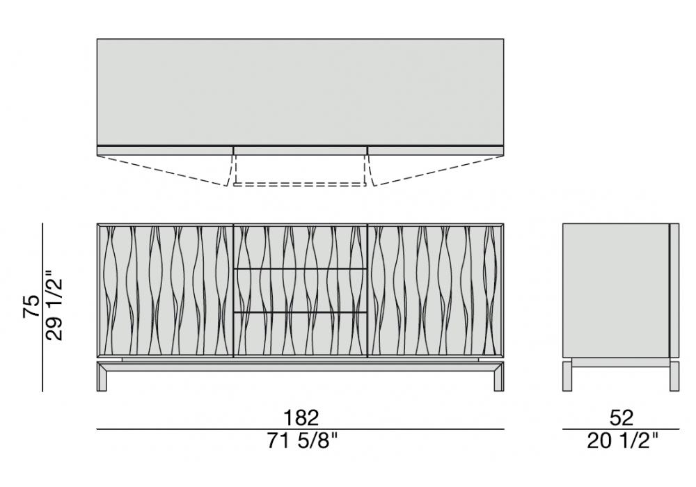 Masai conçu par Marconato & Zappa pour Porada est un buffet en noyer canaletta et piètement en métal en finition gris étain.
