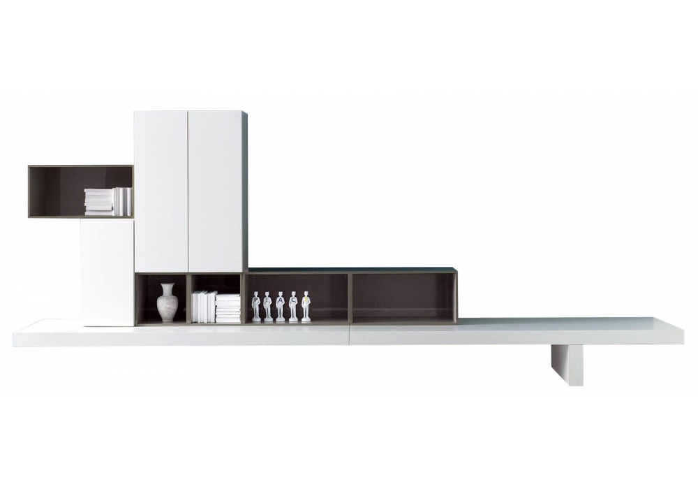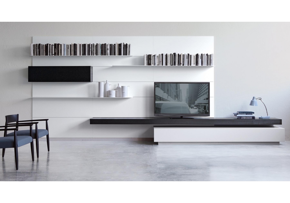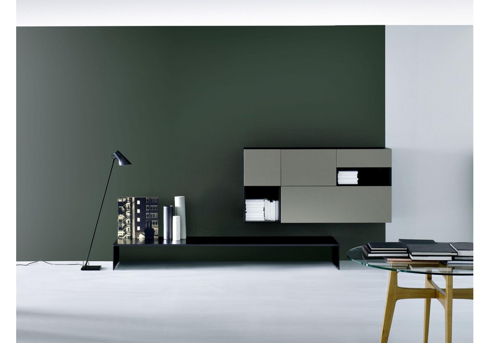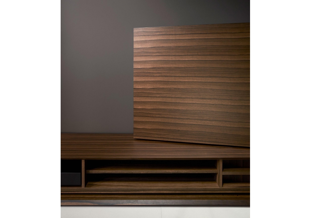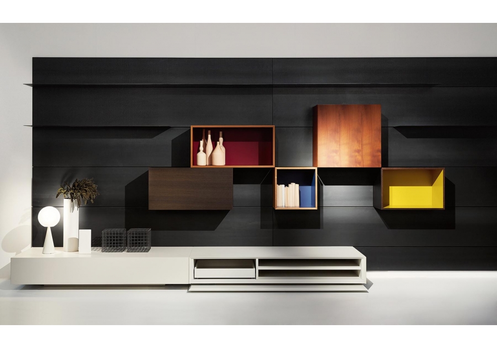 Modern Living conçu par Piero Lissoni pour Porro est un système de conteneurs modulair réalisé en bois disponible en différentes finitions et configurations.