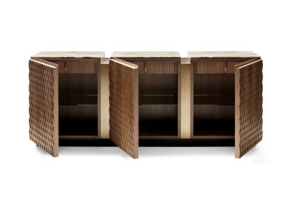 Victor conçu par Castello Lagravinese Studio pour Opera Contemporary est un buffet avec plateau en marbre, structure en bois et détails en métal. Disponible en différentes finitions et dimensions.