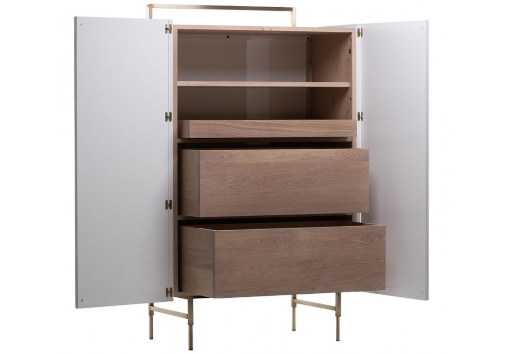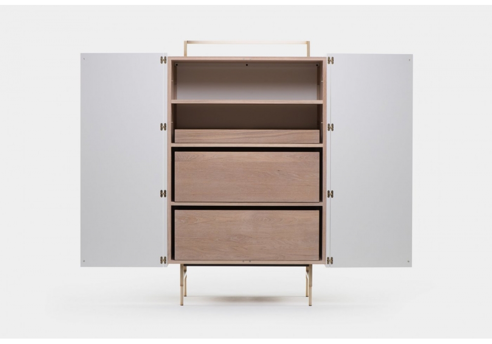Trunk conçu par Neri & Hu pour De La Espada est un meuble de rangement avec extérieur réalisé en HDF peint, tiroirs internes et étagères disponibles en différentes finitions. Structure en laiton brossé.