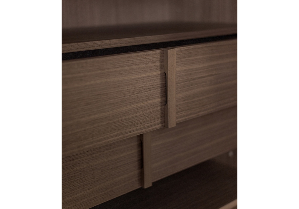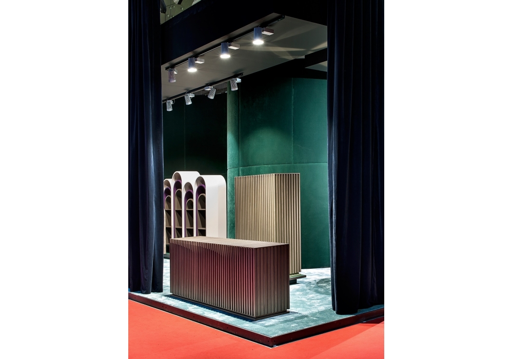 Bars conçu par Ferruccio Laviani pour Emmemobili est un meuble bahut réalisé avec panneaux plaqués. Les bandes, en bois massif, décorent toute la structure ou seulement les portes. Les espaces intérieurs équipés d'étagères en le même placage de la structure.