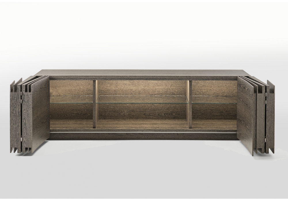 Layers conçu par Ferruccio Laviani pour Emmemobili est un bahut avec structure en panneaux contreplaqués, caractérisé par la façade constituée de 2 éléments en contreplaqué courbé dans la même finition de la structure. Version disponible avec 2 paires de portes pliantes ou avec 2 portes battantes et 3 tiroirs centraux. Sur demande, il est possible d'avoir un éclairage interne à LED avec capteur d'ouverture.