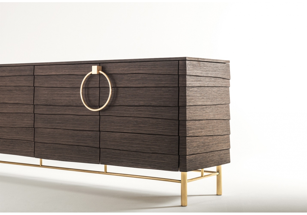 Slice conçu par Ferruccio Laviani pour Emmemobili est un bahut en bois disponible en différentes finitions soutenu par une base en laiton. Disponible en 2 versions: avec poignées en laiton ou sans poignées avec mécanisme push-pull. Disponible aussi en 3 dimensions.