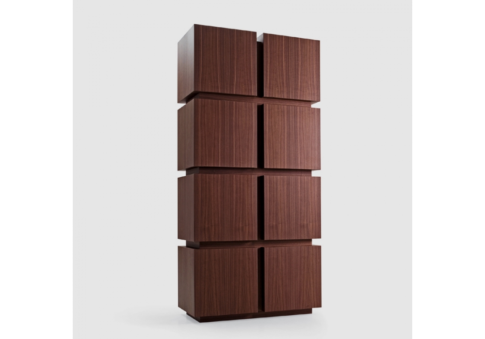 Da.Do conçu par Emmemobili est un meuble cabinet avec portes en bois multicouche recouvert de placage, constitué de la jonction de cubes simples de cm. 45x45x45, rejoints par un cm. 5 cadre, et caractérisé par des portes et cadre avec des bords de 45°. Fourni avec une étagère mobile en verre par espace.