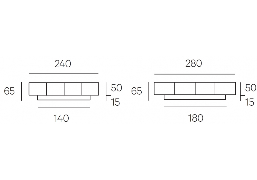 | Dimensions | 240 x 57 x H 65 cm; 280 x 57 x H 65 cm. |