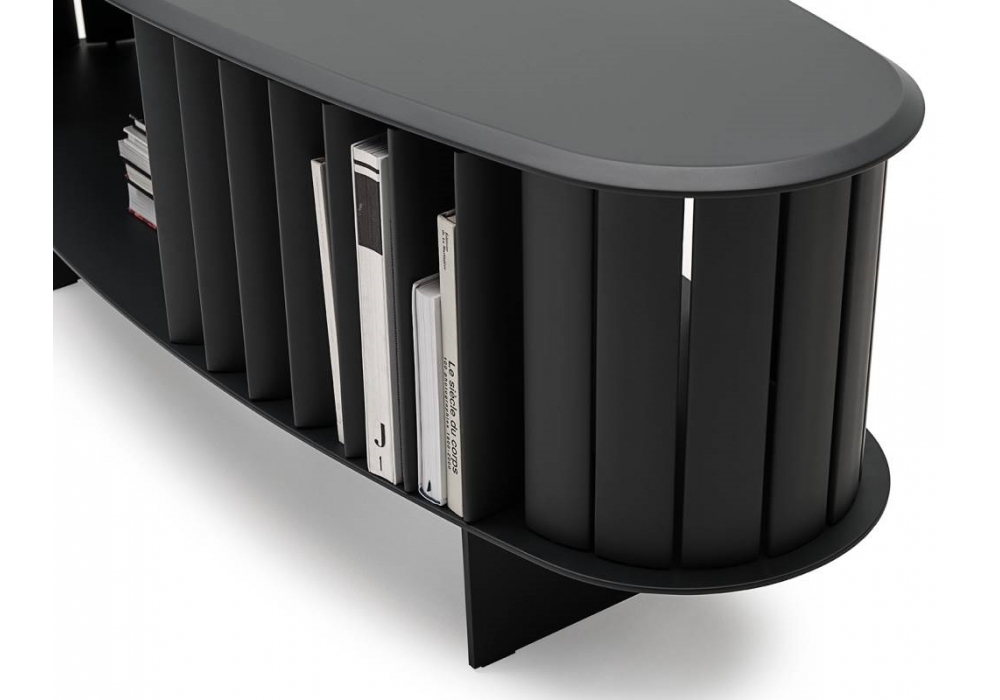 Islands conçu par Stephen Burks pour Giorgetti est un bahut avec plateau et fond en MDF d'une épaisseur de 19 mm, biseautés et façonnés, fond toujours peint en noir mat et plateau disponible en différentes finitions. Lattes en aluminium extrudé à section elliptique et pieds en MDF et tôle d'acier. Lattes et jambes sont toujours peintes en noir mat. Disponible en 2 dimensions.