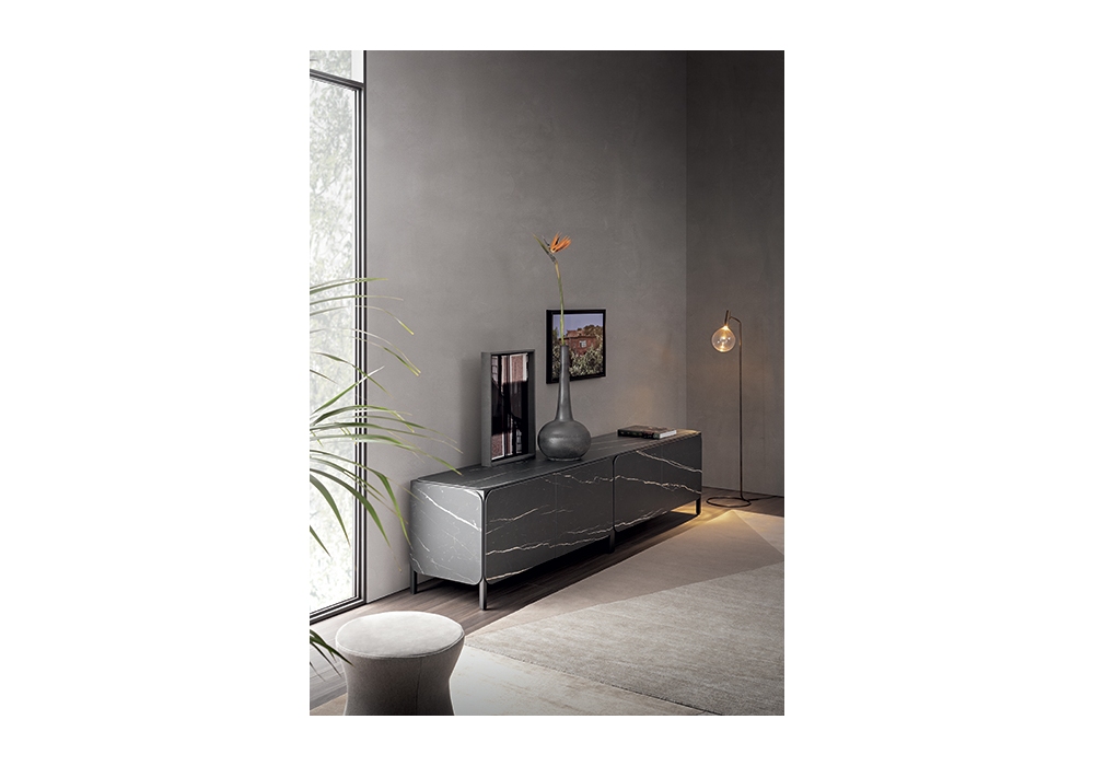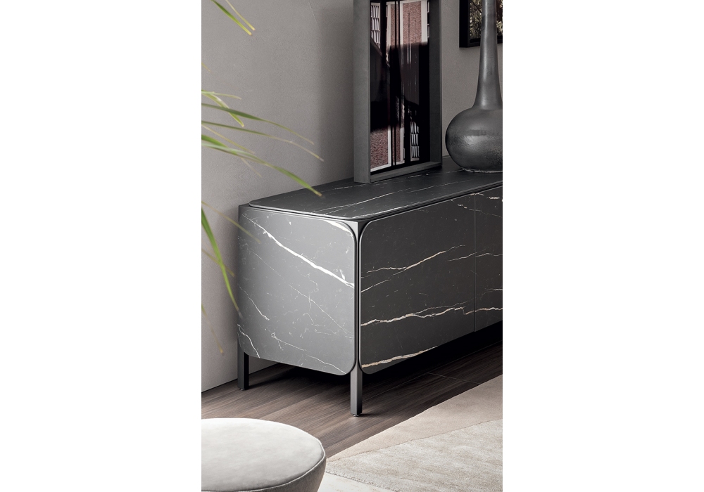 Frame K Sideboard conçu par Alain Gilles pour Bonaldo est un buffet avec structure en céramique en différentes finitions et base en métal peint en différentes couleurs. Disponible en 2 tailles.